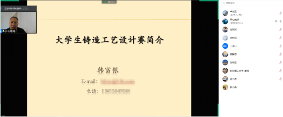 2021年10月30日下午2:00,太原理工大学材料科学与工程学院韩富银副教授应汽机学院邀请,分享了题为“大学生铸造工艺设计赛简介”的线上讲座。本次讲座由威廉体育校内赛事负责人卢先正博士主持,学院老师唐昆、张明军、彭伟杰、周小杰、吉希希、王金行和部分同学聆听了本次讲座。