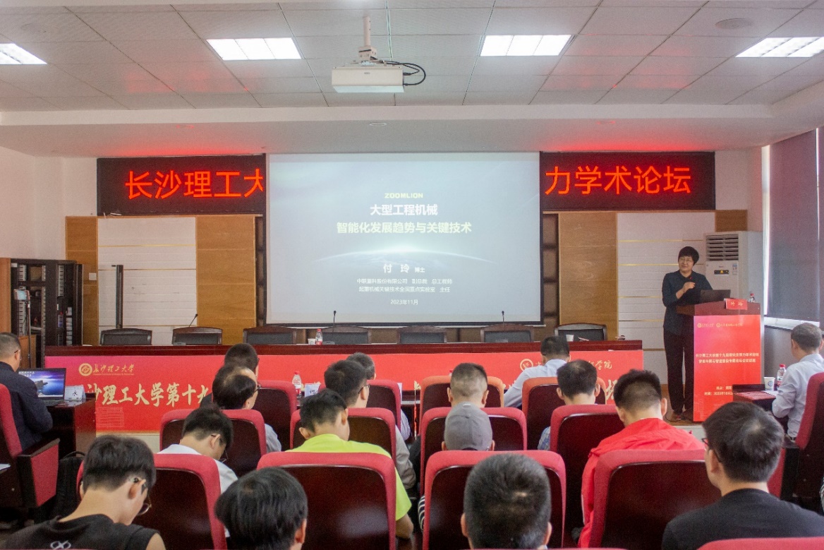 2023年11月1日,汽机学院特聘院长,国务院政府特殊津贴专家,中联重科党委委员、副总裁兼总工程师,中国工程机械学会副理事长付玲博士出席威廉体育第十九届研究生博力学术论坛——“智能车辆与智造前沿”专题论坛并作报告。本次报告由汽机学院副院长毛聪教授主持,副校长胡永乐、研究生院副院长(主持工作)何忠明、副院长(主持工作)胡林、副书记唐宏宾、副院长刘鑫以及学院相关教师、研究生及本科生参加了本次报告会。