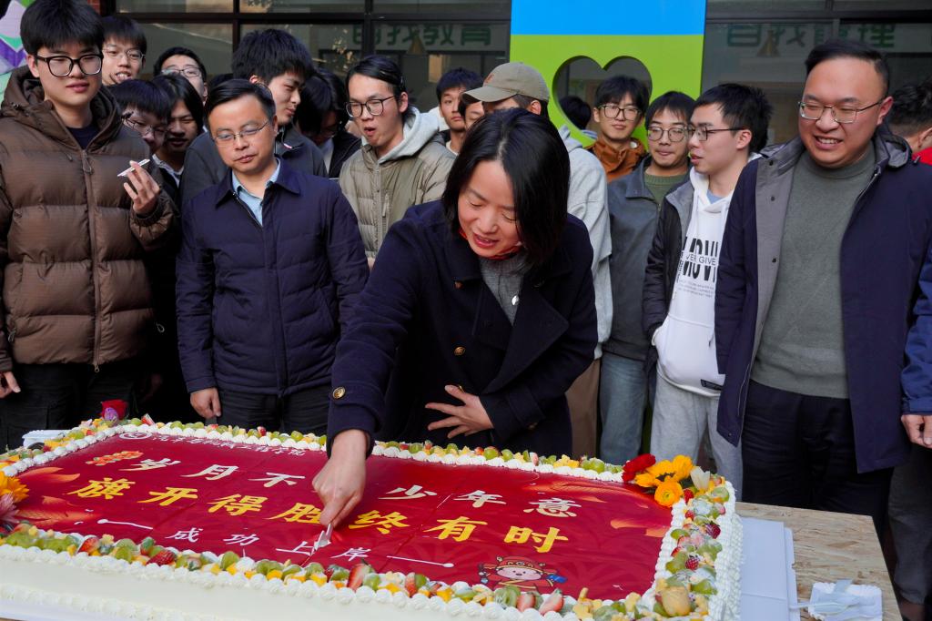 “岁月不负少年意、旗开得胜终有时”,活动现场,学院精心准备了一块长达2.3米、宽0.8米的巨型蛋糕,象征着学子们在考研路上的甜蜜与成功,满载着学院老师对考生们的祝福与期待。在轻松愉快的氛围中,师生们共同分享蛋糕,互赠温暖的祝福,为即将到来的考试注入了满满的信心与力量。