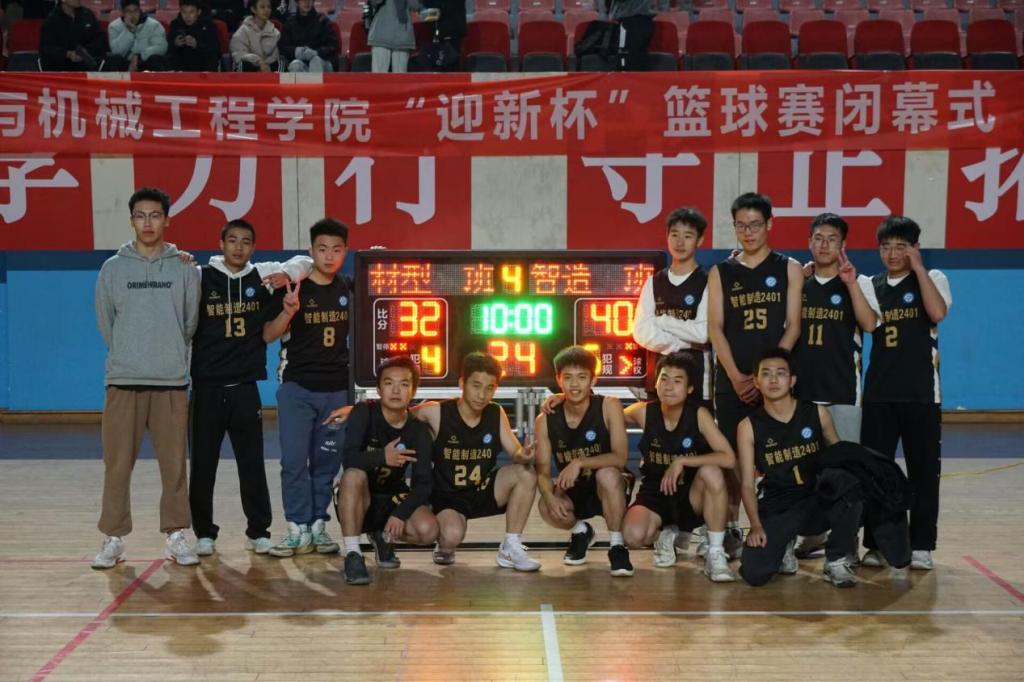 下半场,比赛进入了白热化阶段。材型(专升本)班的球员们展现出了他们坚韧的意志和不屈的精神,他们在防守端筑起了铜墙铁壁,同时在进攻端也不断寻找机会。智造2401班的队员们则在体能和技术上展现出了他们的优势,他们通过不断的跑动和传球,试图打破对手的防守。两队球员都展现出了极高的竞技水平和团队精神。最终,智造2401班以40:32的比分战胜了材型(专升本)班,赢得了这场篮球赛的胜利,获得汽机迎新杯篮球赛冠军。