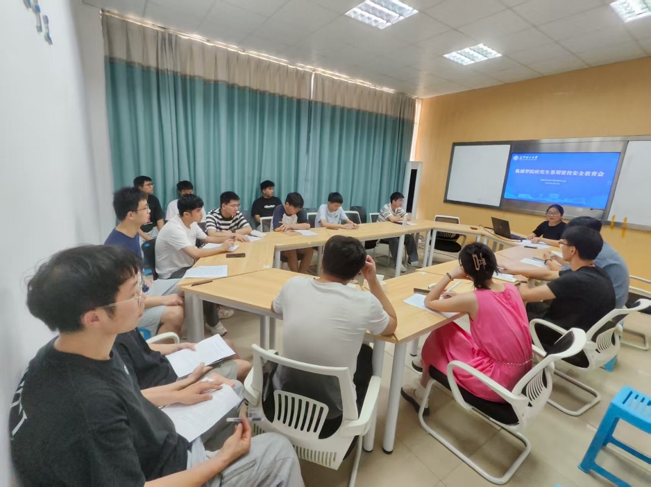 会上,彭老师介绍了各工作室研究生留校情况,明确了假期日常教育管理要求,发放了《机械学院2025年研究生暑假留校安全须知》提示,从增强规矩纪律意识、加强安全防范意识、主动加强沟通报告、树立正确的劳动观四个方面进行了强调。