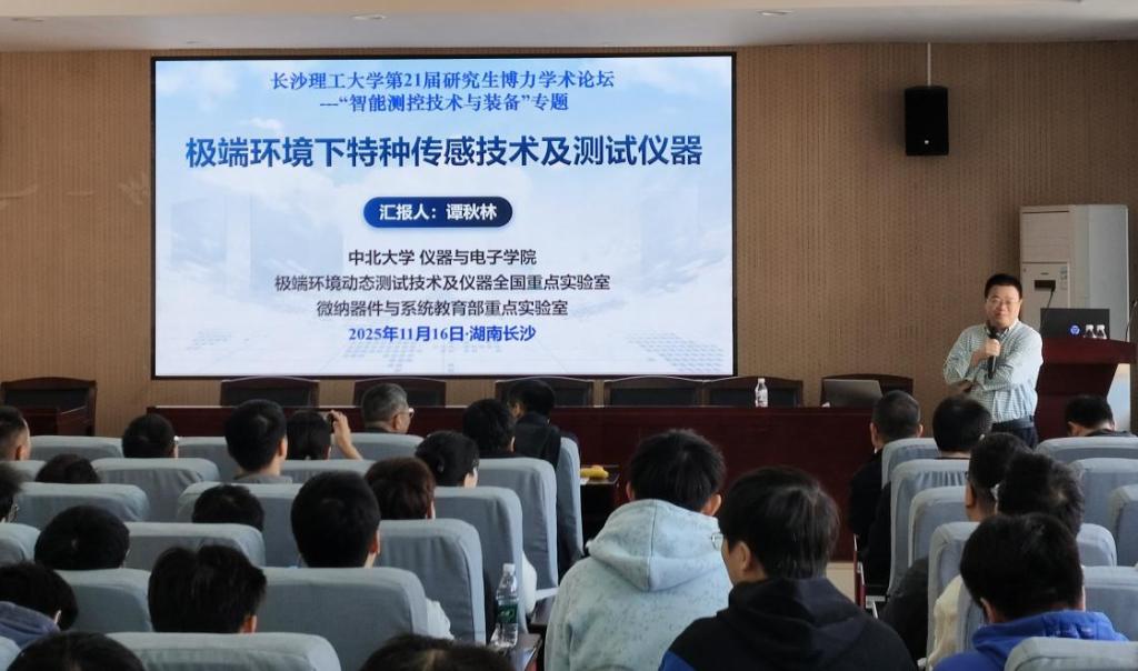 谭秋林教授以“极端环境下特种传感器及测量仪器”为主题,系统阐述了该领域的七大核心技术方向,并重点介绍了弹箭航天用瞬态高温力学MEMS传感器、红外光学气体传感器的最新研发进展。他强调,“极端环境下力热多参数动态原位测试”是国家重大战略需求,亟需攻克原位感知与溯源校准等技术瓶颈,并现场与师生就技术难题及应用场景展开互动答疑。