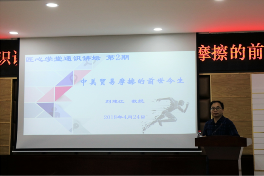 2018年4月24号晚,汽机学院于工科一号楼B-417举办第二期匠心学堂“通识讲坛”,特邀威廉体育williamhill经管学院刘建江教授作《中美贸易摩擦的前世今生》讲座。来自汽机学院共计152位师生参加了本次讲座。