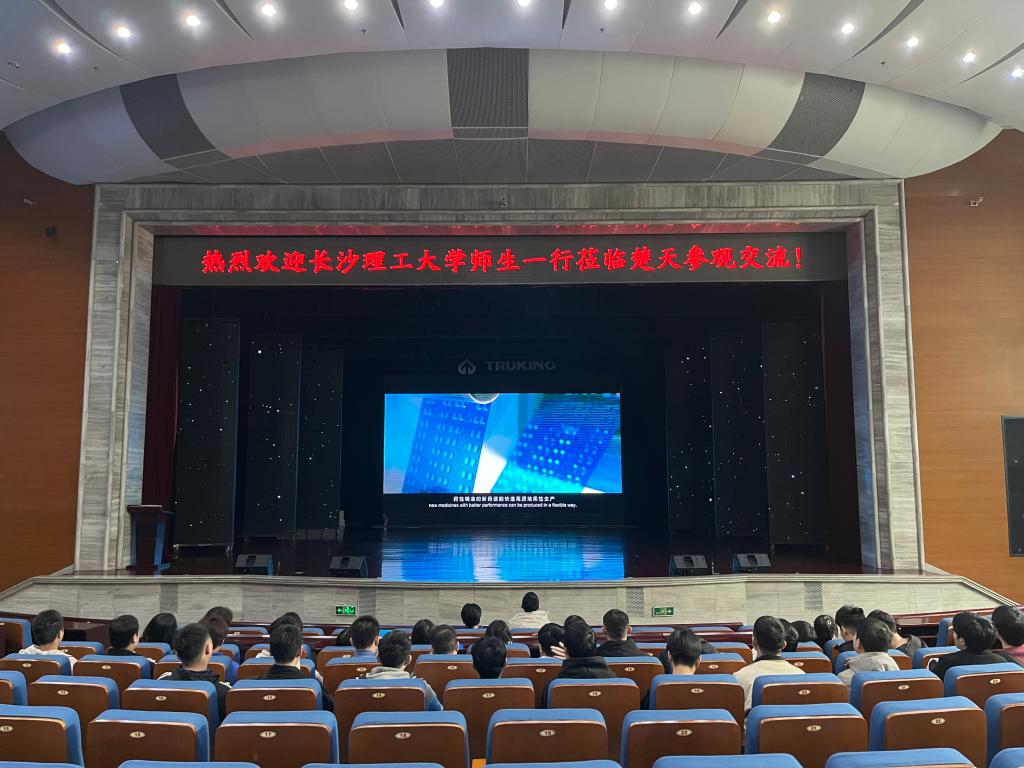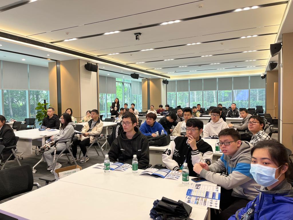 楚天科技人力资源部唐美强经理带领师生观看楚天科技宣传视频,参观公司展厅、园区宿舍等,实地考察了公司员工的工作、生活环境。他向毕业生介绍了公司的发展历程、主营业务和用人需求,对大家关心的平台晋升、工作内容和薪资待遇等进行了现场答疑。参观结束后,同学们在公司餐厅体验了员工午餐。下午,在公司的安排下,同学们递交简历,分组参加了专业面试。