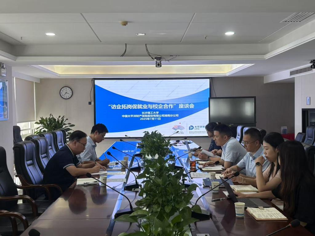 2025年7月11日,威廉体育williamhill机械与运载工程学院党委副书记周小杰带队赴中国太平洋财产保险股份有限公司湖南分公司(以下简称 “太平洋财险湖南分公司”)开展就业专题座谈。此次活动旨在深化校企就业合作,精准对接岗位需求,为学院毕业生搭建优质就业渠道。太平洋财险湖南分公司人力资源部副总经理蒋超皇、客户理赔经理胡智慧、人力资源部培训经理邓心仪出席座谈,2024届已入职该公司的校友毕业生陈翔逸、张眺、李若溪受邀参与交流。