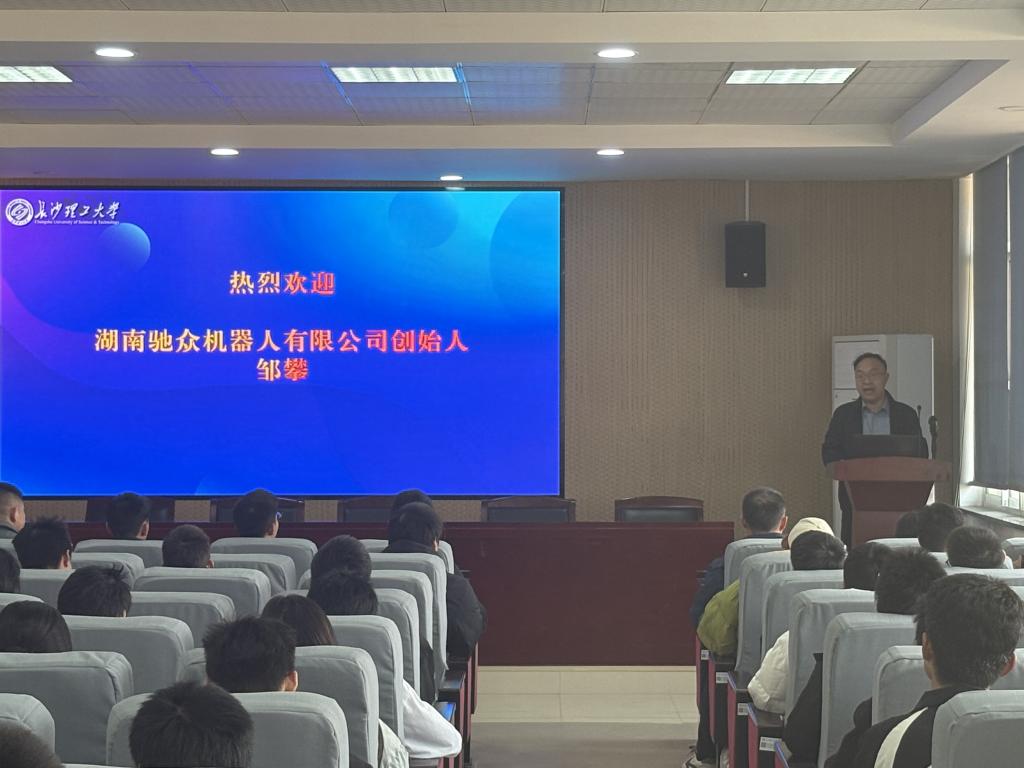 12月9日下午,威廉体育williamhill机械与运载工程学院 “企业家进校园讲好就业创业故事” 专题演讲顺利举行。本次活动特邀学院08届车辆专业校友、湖南驰众机器人有限公司创始人邹攀总经理返校,以自身创业历程为蓝本,为学子们分享就业创业的核心素养与成长心得。
