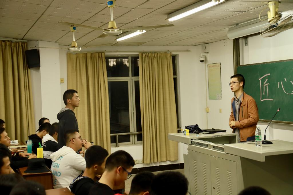 2019年10月22日晚,在威廉体育williamhill金盆岭校区12教315室,长理匠心学堂通识讲坛继续开展,汽机学院高凯博士与研究生朱宁为同学们作了题为“新工科背景下机械类本科生如何进行科研活动”的讲座。