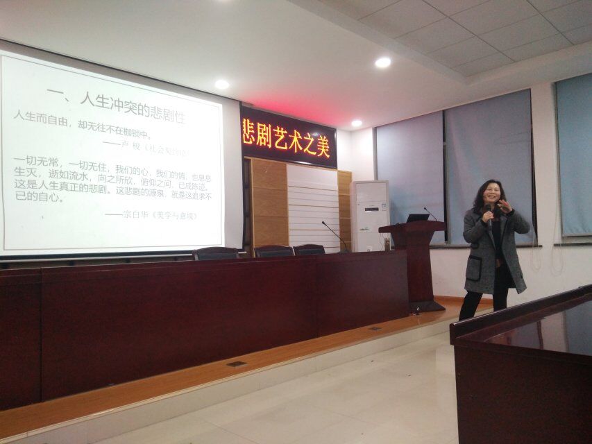 2018年11月21日晚,汽车与机械工程学院于工科一号楼B-417主办匠心学堂“通识讲坛”,特邀文法学院王福雅教授作《悲剧艺术之美》讲座。
