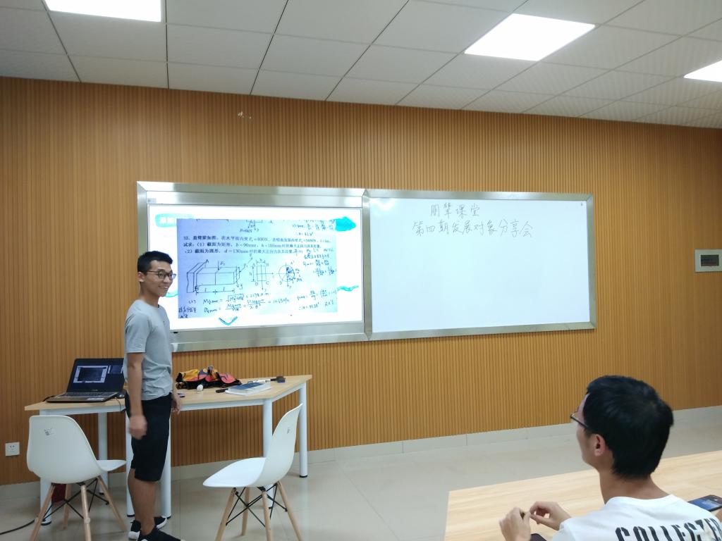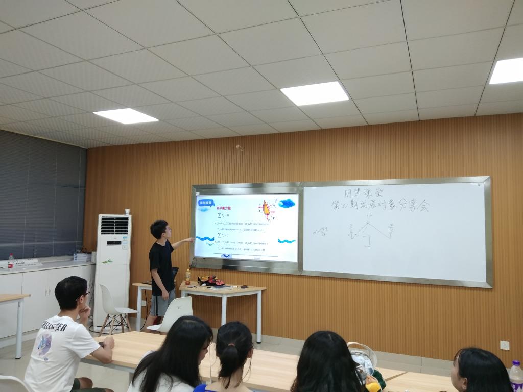 6月20日晚7:00,朋辈课堂发展对象分享会第四期在云塘校区工科一号楼B411举行。本次朋辈课堂以“材料力学的解题技巧”为主题,邀请了学生第四党支部四位优秀的发展对象来讲解,他们分别是张毅、张子瑞、彭顺、陈俊羽。