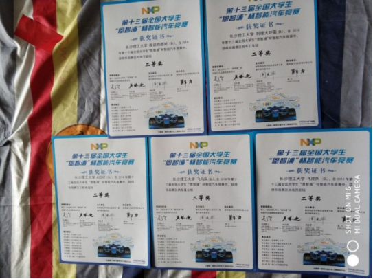 2016年,参与第十一届全国大学生“恩智浦杯”智能车省赛,获得光电四轮组二等奖,光电追速组二等奖。