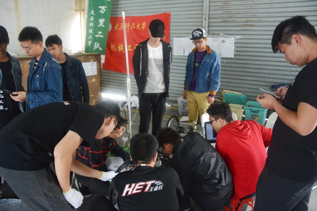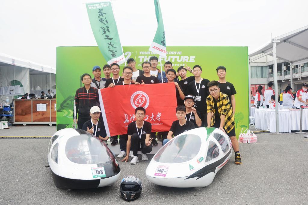 车队这次参加了EV电车组比赛,车队队员“踩”在前辈的肩膀上,他们认真学习并探究了以往车队比赛的经验,不断精进。在老师的指导下,最终排除万难,以“潇湘绿箭车队”亮相赛场。