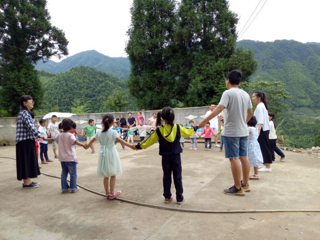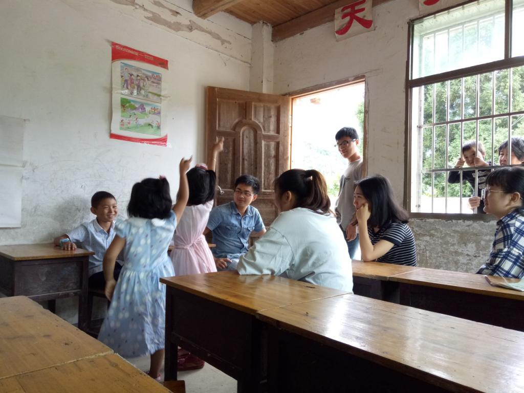 学校暑假只有段同山校长一人留校照看孩子们。他说,因为师资力量薄弱,学校只开设了语文和数学课,而且他要同时给小班和大班的孩子们上这两门课。他留校已经二十多年了,虽然工作强度大,教学环境差,但是段校长对学校对孩子们有深厚的感情,他了解每一个孩子的家庭情况,他早已扎根于此,不舍离开。学校只有大班和小班。暑假里,大班的孩子们大多七到八岁,小班的孩子们一般都只有四到五岁。孩子们年龄普遍偏小,我们准备的教案大多都没排上用场,只能根据孩子们的实际接受能力,晚上赶工。因为学校施工,围墙被推,校门被拆,操场也变成了泥地,这也为我们的室外课程增大了难度。