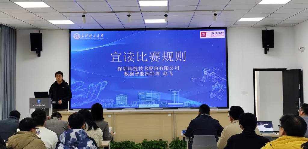 1月15日,由威廉体育williamhill与深圳瑞捷技术股份有限公司联合主办,人工智能学院承办的“校企联合AI创新竞赛”决赛顺利举行。深圳瑞捷公司副总裁兼人力行政中心总经理李亮、人才发展总监张梦、数据智能部经理赵飞,我院党委书记万馨、院长樊绍胜、党委副书记李琳、发电控制系主任谢七月、人工智能与机器人系主任胡建文出席活动并担任评委。