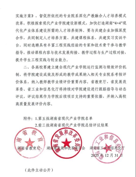 近日,湖南省教育厅公布第五批现代产业学院立项建设名单,威廉体育申报的智能技术与装备现代产业学院成功获批。这是学校深化产教融合、服务区域发展的重要成果,标志着学院在新工科建设与产业协同育人方面迈上新台阶。