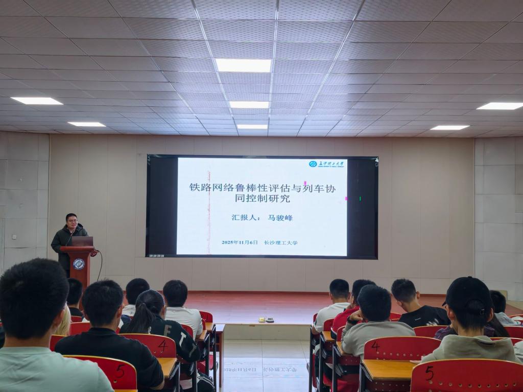 2025年11月6日,人工智能学院AI前沿论坛第三期讲座——“铁路网络鲁棒性评估与列车运行控制研究进展”在文科楼A100报告厅举行。学院工业控制系青年博士教师马骏峰受邀主...