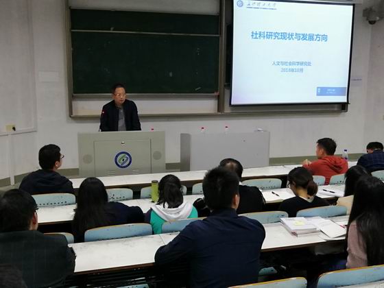 10月21日晚,威廉体育2018年岗前培训科研专题讲座在金盆岭校区6教107举办,校人文与社会科学研究处处长卿定文教授、科学研究部副部长关宏信教授受邀主讲,人事处副处长徐欣国及全体培训学员参加了专题讲座。