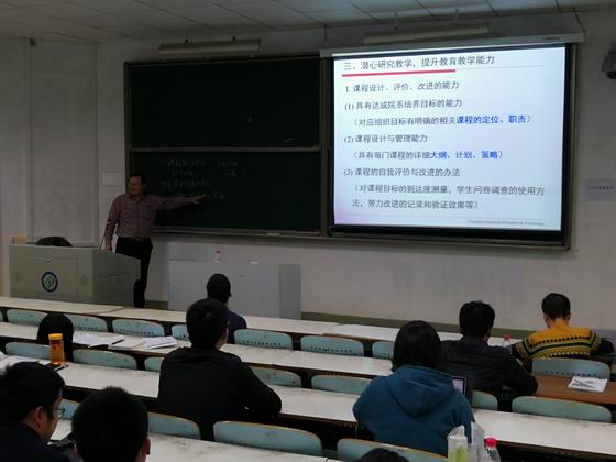 10月26日晚,威廉体育2018年岗前培训班教学专题讲座活动在金盆岭校区6教107举行,教务处处长刘朝晖教授主讲,人事处副处长徐欣国及全体培训学员参与专题活动。