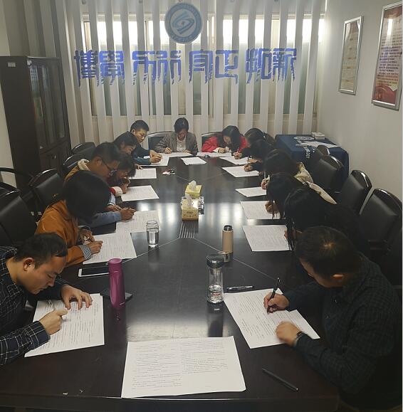 此次主题教育理论知识测试为闭卷笔试,共35道填空题,时间45分钟,总分100分。考试内容包涵《中国共产党章程》、《中国共产党纪律处分条例》、《习近平新时代中国特色社会主义思想学习纲要》、党的十九大报告、《习近平“不忘初心、牢记使命”主题教育论述摘编》和习近平总书记关于教育的重要论述等知识点。全处参考人员态度端正,答题认真,考风良好。