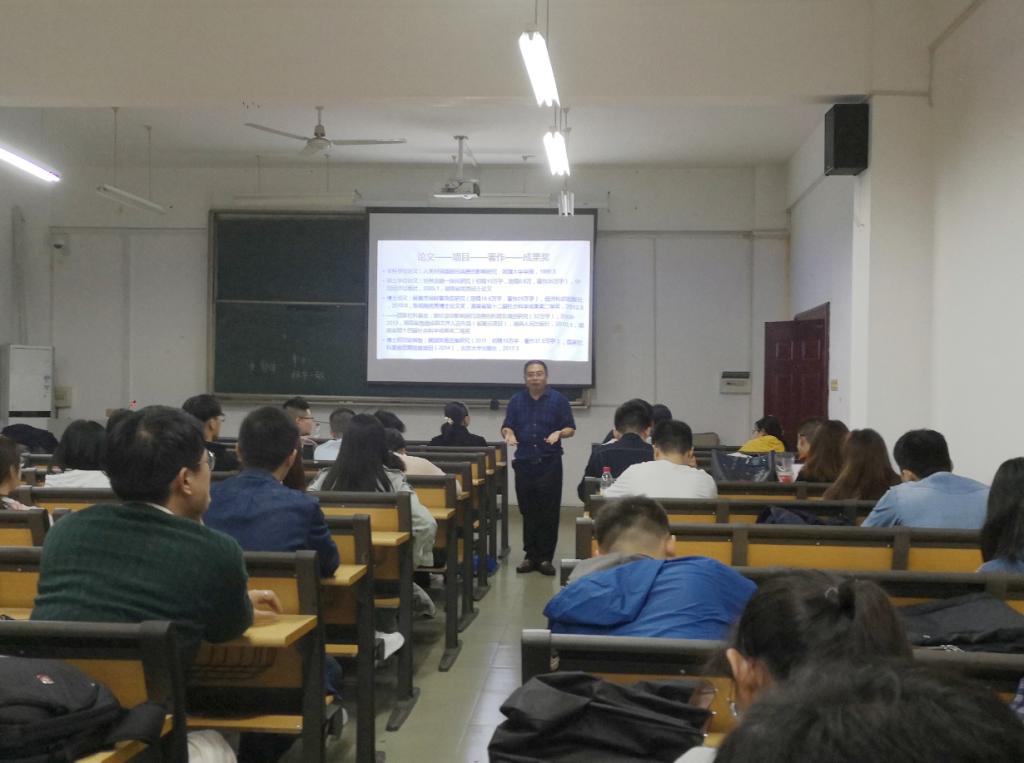 9月27日晚,校人文与社会科学研究处处长刘建江教授应邀在金盆岭校区7教 314室为新入职教师岗前培训班做了题为《个人成长、集体发展与项目申报——从小我到大我》的科研专题讲座,校党委教师工作部(人事处)徐欣国副处长、相关工作人员和2020年新入职教师岗前培训班学员共70余人参加了讲座。