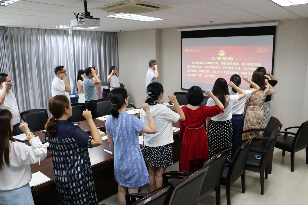 首先,校党委副书记蒋昌波同志带领人事处全体党员重温入党誓词,支部书记何忠明代表人事处党支部向全体党员做了述职报告。