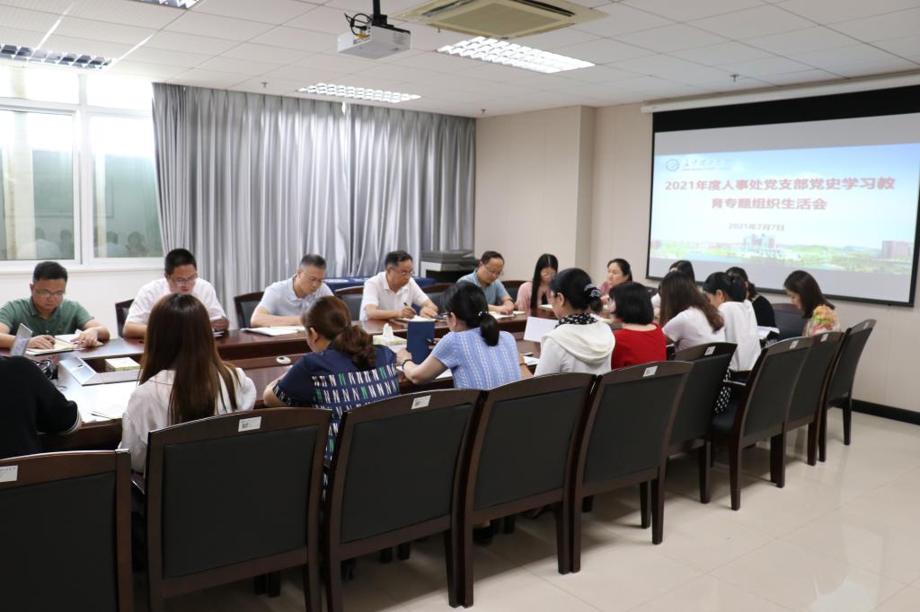 7月7日下午,根据学校和机关党委工作安排,人事处党支部在A303会议室召开了党史学习教育专题组织生活会。学校党委副书记蒋昌波出席了本次会议,会议由支部书记何忠明主持,全体党员参加了会议。