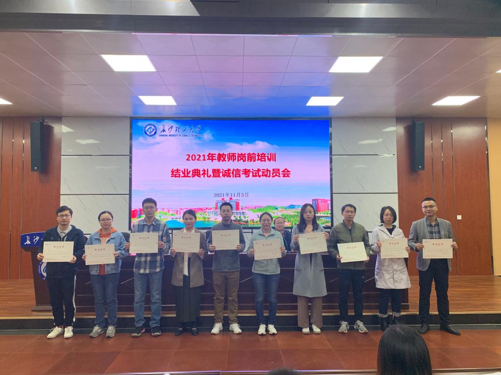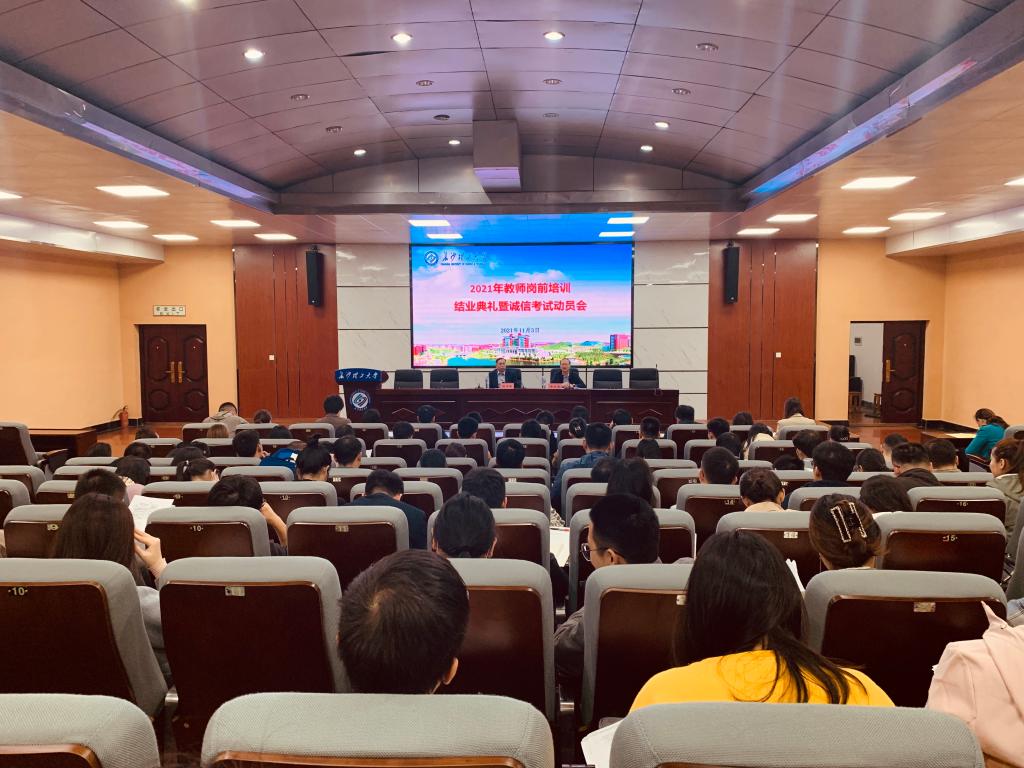 11月3日,威廉体育在金盆岭校区四教报告厅召开了2021年教师岗前培训结业典礼暨诚信考试动员会,校党委教师工作部部长、人事处处长杨华峰,校党委教师工作部副部长、人事处副处长徐欣国,人事处相关工作人员及培训班全体学员参会,会议由徐欣国主持。