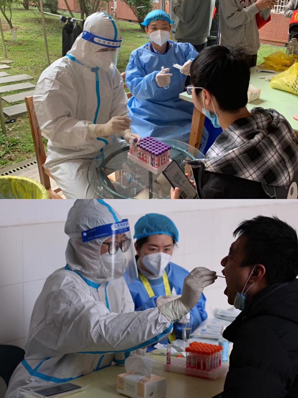 △欧阳辉、黎帅在协助进行核酸检测