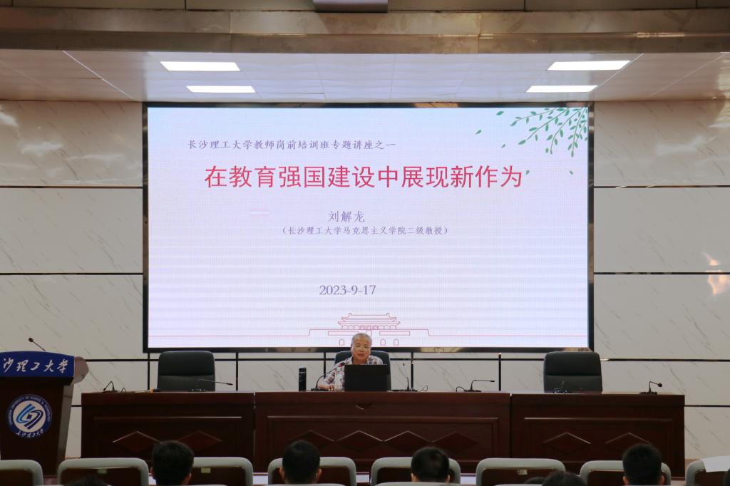 9月17日下午,在金盆岭校区四号教学楼报告厅,刘解龙教授应邀以“在教育强国建设中展现新作为”为题,为2023年教师岗前培训班作专题讲座。讲座由人事处副处长、教师工作部副部长徐欣国主持。