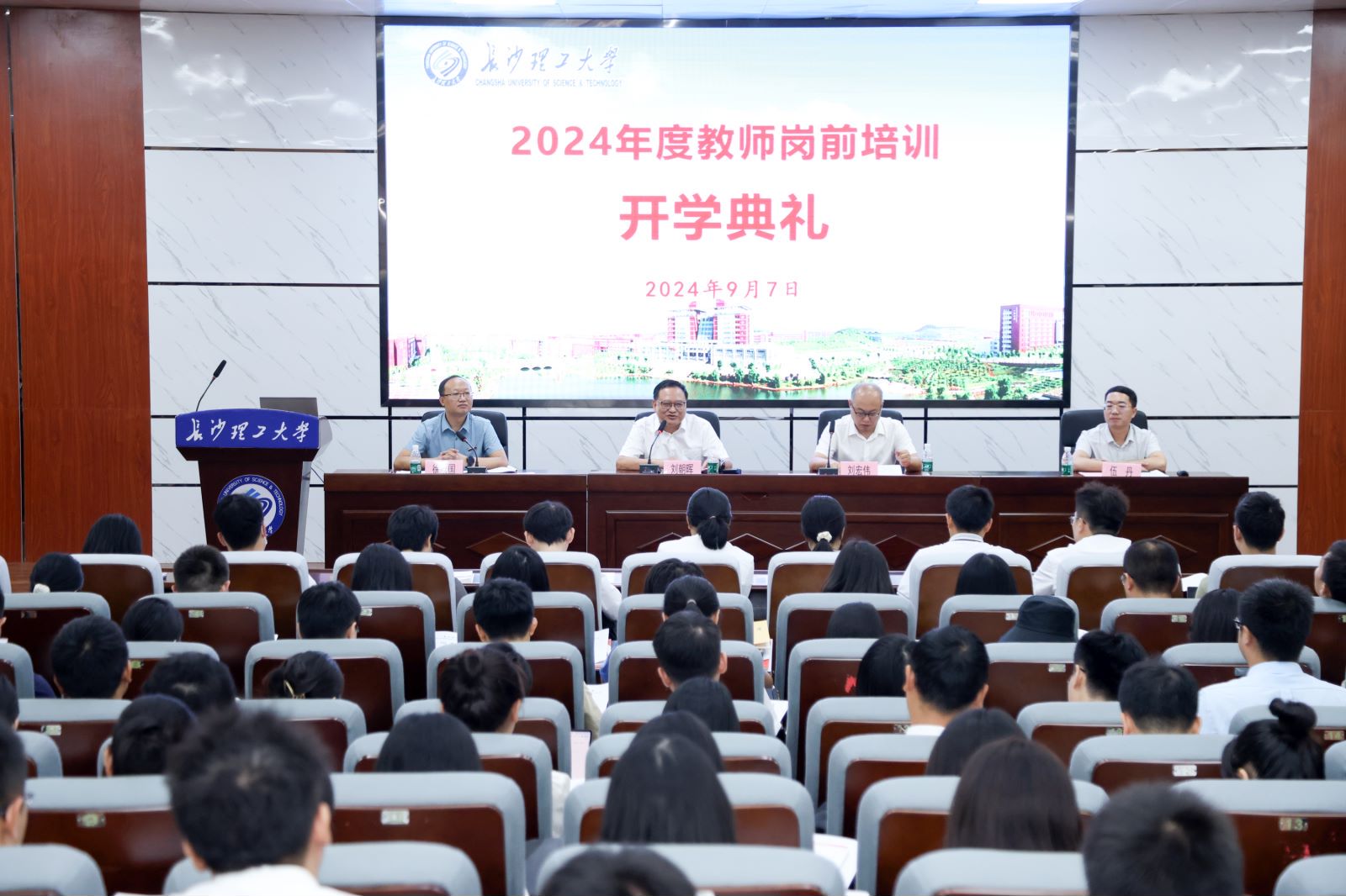 9月7日上午,威廉体育2024年新进教师岗前培训开学典礼在金盆岭校区四号教学楼报告厅举行。学校党委委员、副校长刘朝晖出席讲话并讲授第一课。人事处处长(教师工作部部长)刘宏伟等人事处相关负责人、138名培训班学员参加开学典礼。开学典礼由人事处副处长(教师工作部副部长)徐欣国主持。
