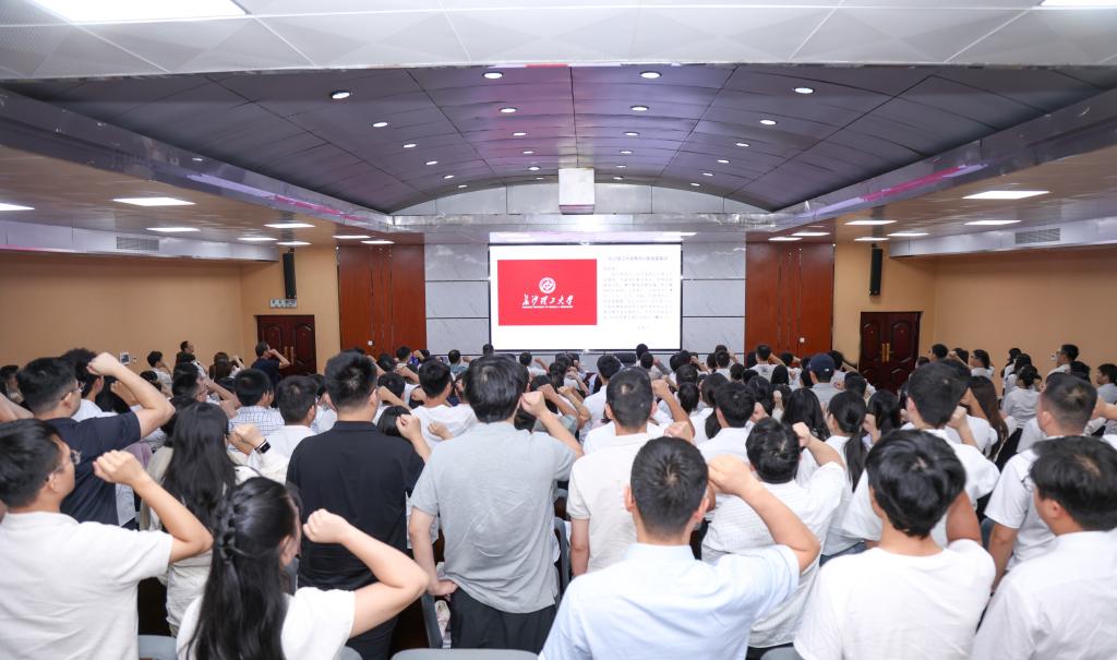 全体新进教师面向校旗,高举右拳,举行了庄严的入职宣誓仪式。