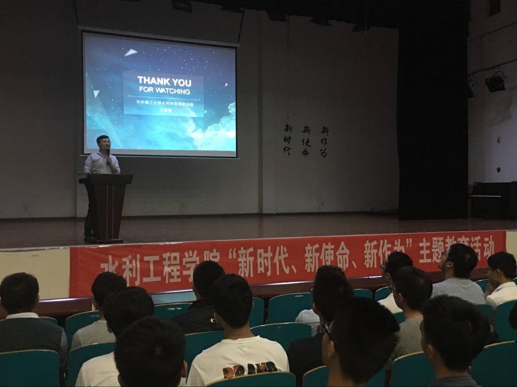 5月9日晚,水利工程学院在创新创业园学术报告厅举行职业规划主题讲座。本次讲座由院党委副书记王学成主持,由我院2009级港航专业校友王海翔主讲,学院各年级辅导员及2015级全体学生参加本次讲座。