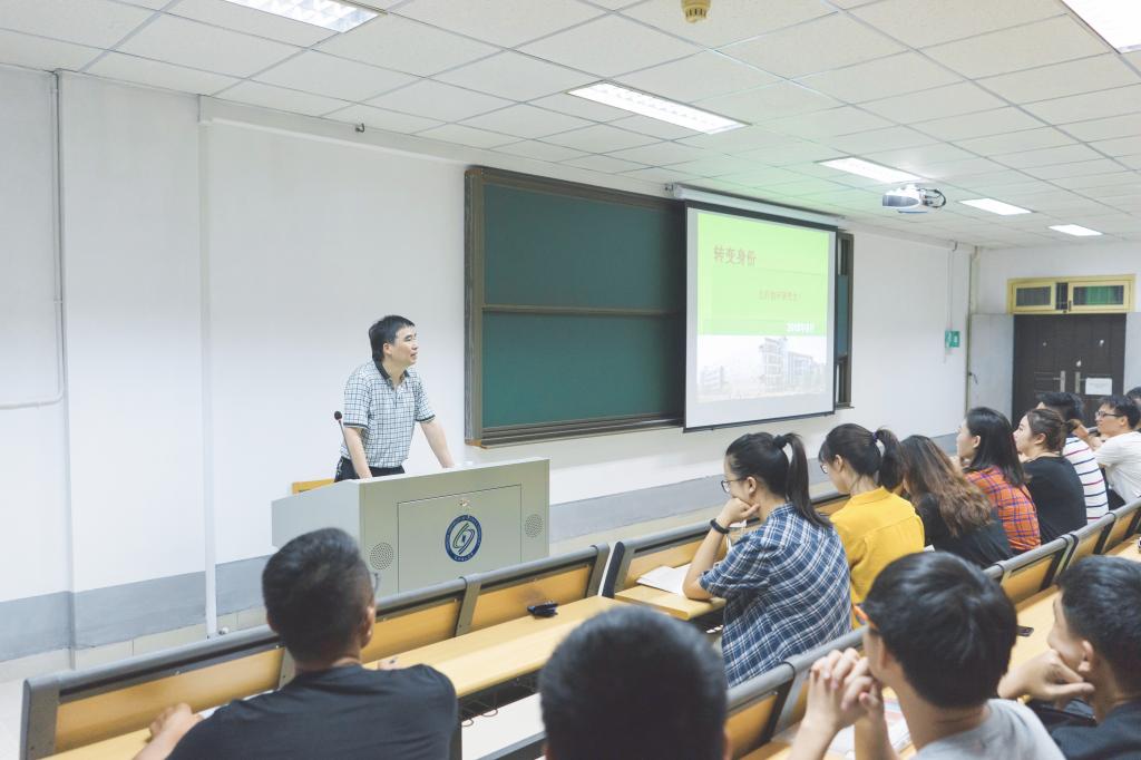 胡旭跃院长首先以“角色转变——从本科生到研究生”为主题,从本科生与研究生的角色差异、研究生迎接挑战的不同之处、怎么做研究生等三个方面向新生们诠释了什么是研究生。他认为,作为一名工科研究生,应在导师的指导下,通过自主探究开放式的学习,培养自己独立发现、解决问题的能力,尤其是与专业紧密相关的一些工程实际问题。除此之外,胡院长指出人格的培养在研究生阶段也至关重要。