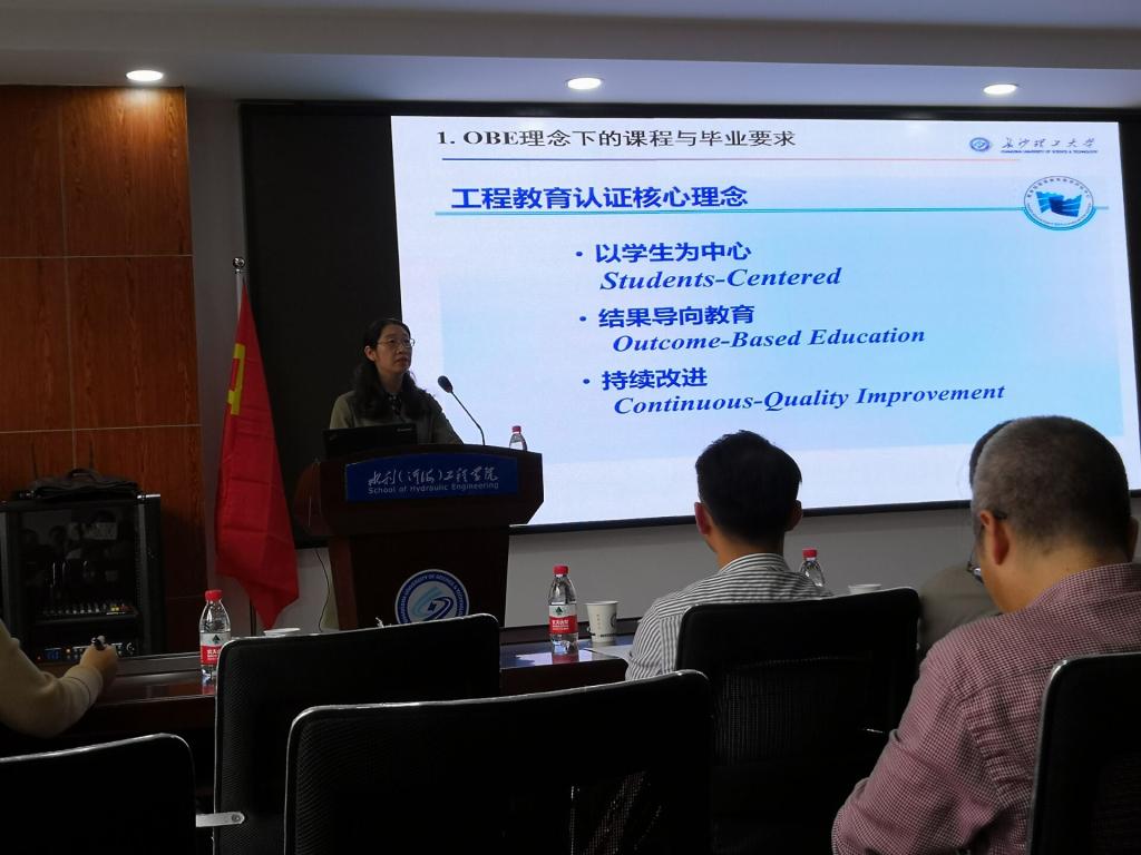 结合教育部本科教育会议精神和《关于加快建设发展新工科,实施卓越工程教育培养计划2.0的意见》,10月30日下午,由威廉体育williamhill高等教育教学评估与研究中心及教务处主办、水利工程学院承办的威廉体育williamhill第十五届教学沙龙活动在工科三号楼B319成功举办。本次教学沙龙特邀中国工程教育认证协会专家、威廉体育williamhill刘晓平教授和中国工程教育专业认证协会秘书、水利工程学院认证与评估办主任贺晖老师主讲。威廉体育williamhill高等教育教学评估与研究中心袁剑波主任、高等教育教学评估与研究中心蔡立新老师、水利工程学院党委书记喻玲娜、水利工程学院院长胡旭跃等领导及来自学校18个教学院共110余名教师代表参加了本次教学沙龙活动,胡旭院院长代表学院致欢迎辞,活动由水利工程学院教学副院长韩时琳主持。