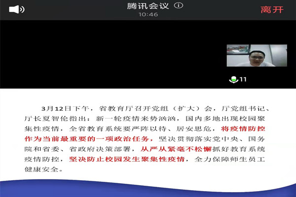 3月15日下午,水利与环境工程学院组织全院教职工在线上召开新冠肺炎疫情防控工作会议,会议由院长陈杰主持。