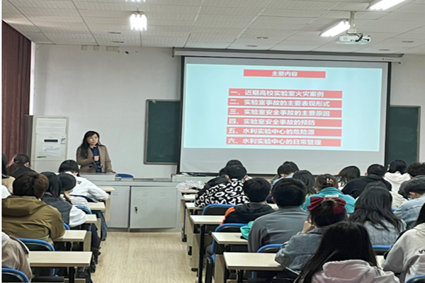 实验室安全直接关系到广大师生的身体健康和生命安全,对高校顺利开展实验教学及科研工作至关重要。为进一步提高广大师生实验室消防安全意识,水利实验中心于2022年4月29日组织开展消防安全教育活动,本次教育活动由水利实验中心余关龙主任、余志副主任主持,实验中心其他老师参加了此次活动,与会研究生人数超过100人。