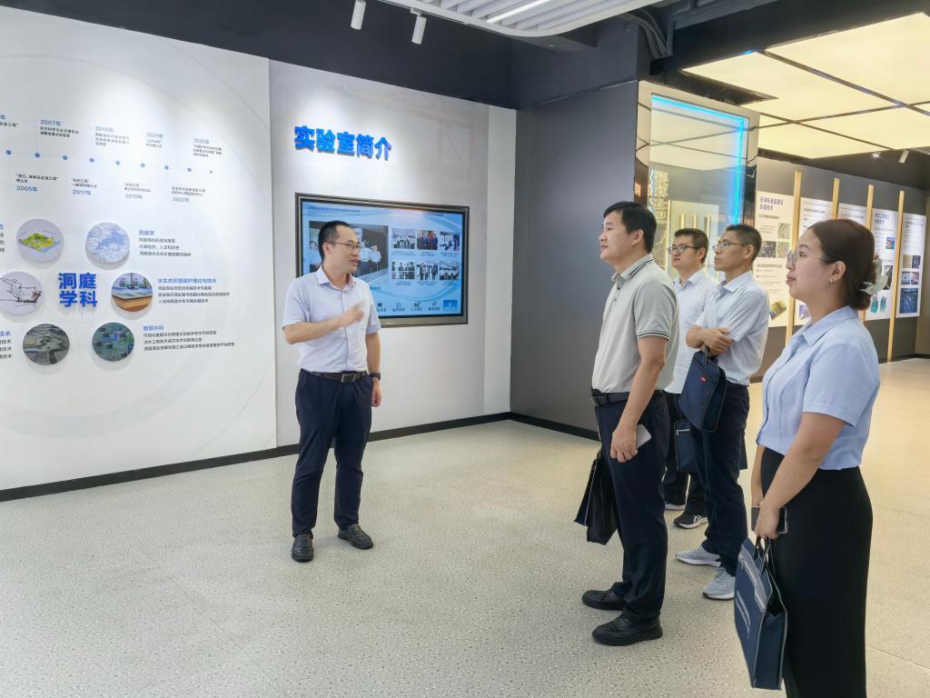 会后,卢达聪一行参观了洞庭湖水环境治理与生态修复湖南省重点实验室,伍志元就实验室的研究方向、关键技术突破、重大科研成果及其工程应用实例进行了深入细致的讲解。