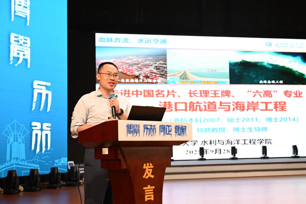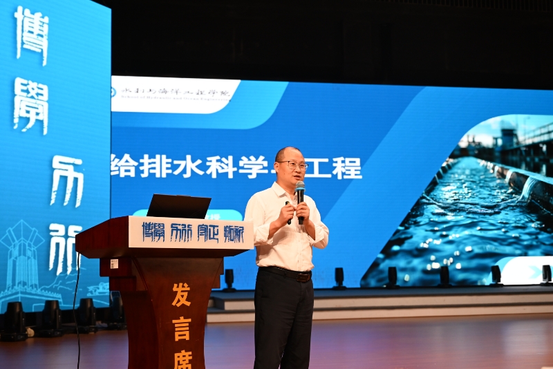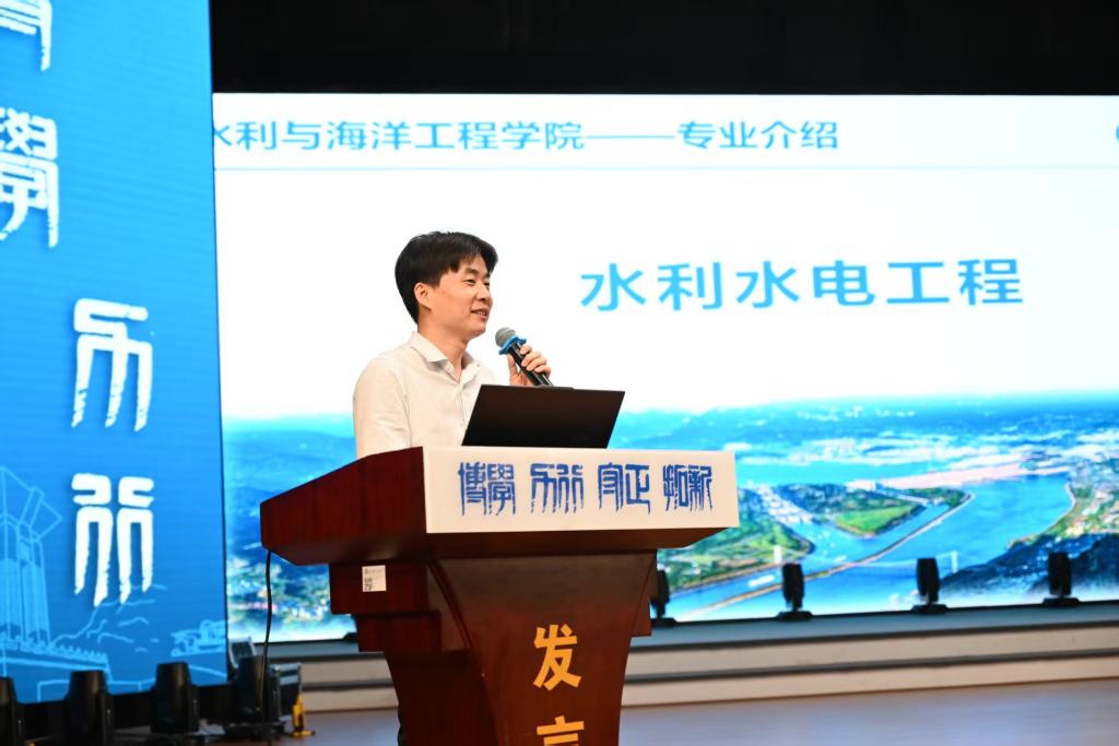 在专业宣讲环节,五位专业宣讲代表精彩开讲,湖湘青年英才伍志元深度解读“中国名片、长理王牌、六高专业”港口航道与海岸工程专业,通过优秀校友的案例指出专业大有可为;湖湘青年英才李毅教授阐释水利水电工程在绿色能源方面的战略地位,并以雅江下游水电站为例明确水利人的使命担当;盛丰教授指出一切涉水事务,追根溯源都是水文命题,他通过大量的案例指出水文与水资源学科发展永无止境,前景广阔;湖南省科技创新领军人才孙士权教授通过专业是什么,学什么,发展怎么样揭示给排水科学与工程在智慧水务与碳中和目标下的发展路径;教育部青年长江学者姚宇教授对船舶与海洋工程专业进行了全面概括,展望了专业支撑海洋强国战略的发展前景。五位专家聚焦专业内核、行业前沿、时代使命,深入剖析学科脉络与时代使命专业内涵,深化新生专业认知,筑牢学科自信根基。