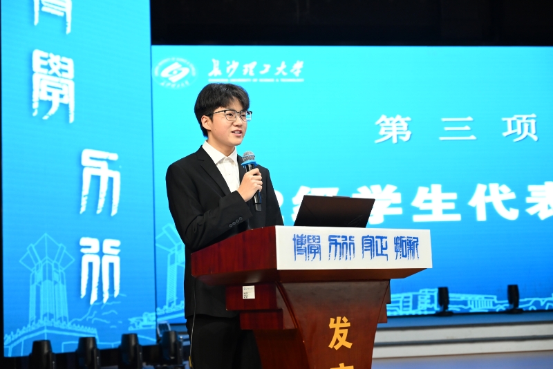老生代表给排水2202班王俊超结合成长经历分享感悟,以坚定信仰投身党建服务,专注学业科研攻克难题,锤炼综合能力。他勉励新生勇于探索,在实践淬炼中成长。新生代表港航2502班蒋林溪以“以青春为舟,向蔚蓝启航”为主题,表达成为“水利人”的自豪,承诺以扎实学识筑牢治水根基,将个人理想融入国家水利事业,在守护江河湖海中践行青年担当。