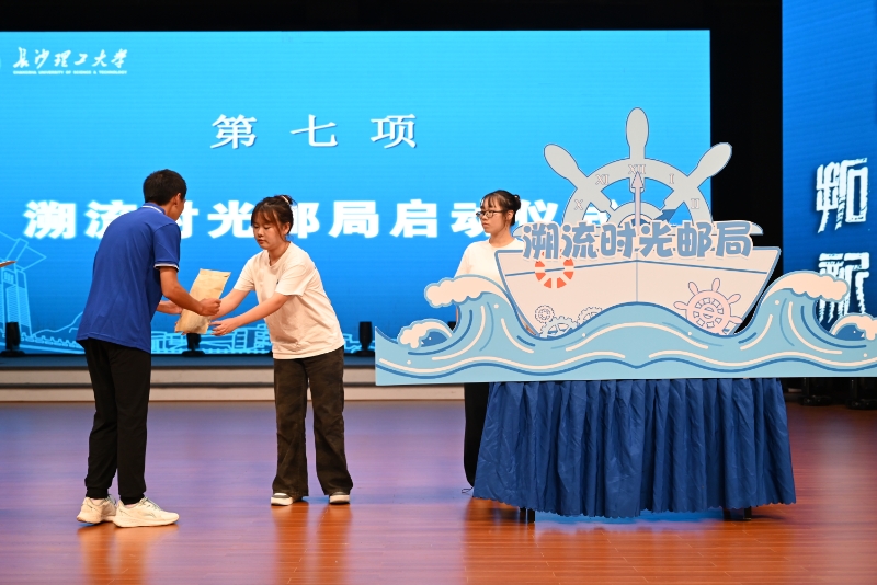 典礼上举行了充满仪式感的“溯流时光邮局”启动仪式。新生代表将写给未来的信投入时光信箱,封存大学梦想,锚定成长坐标。