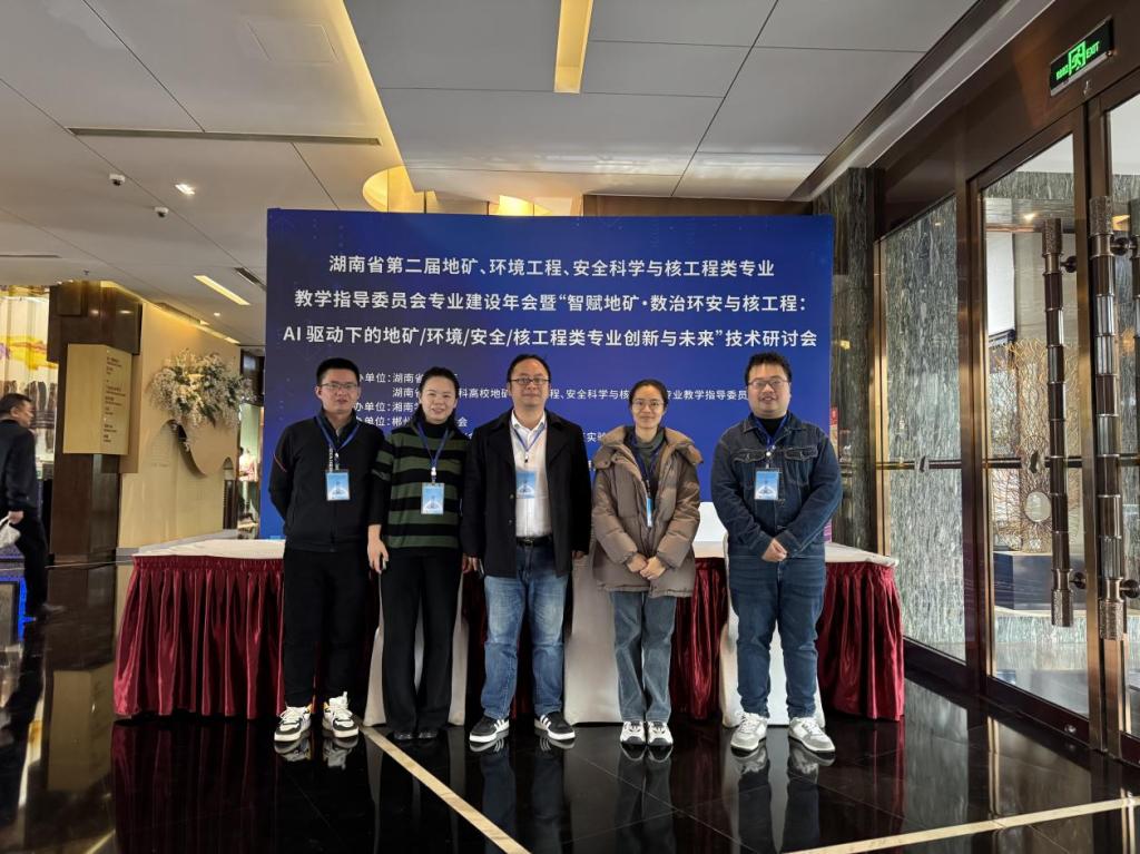 12月6日,湖南省第二届地矿、环境工程、安全科学与核工程类专业教学指导委员会专业建设年会暨“智赋地矿·数治环安:AI驱动下的专业创新与未来”技术研讨会在湖南郴州举行。会议由湖南省教育厅、湖南省普通本科高校地矿、环境工程、安全科学与核工程类专业教学指导委员会主办,湘南学院承办,汇聚了全省各大高校教师代表,共同探讨了技术赋能下的专业建设与人才培养革新。我院聂小保、向洪勇、贺文杰、李莎、文晓凤一行参加了此次会议。