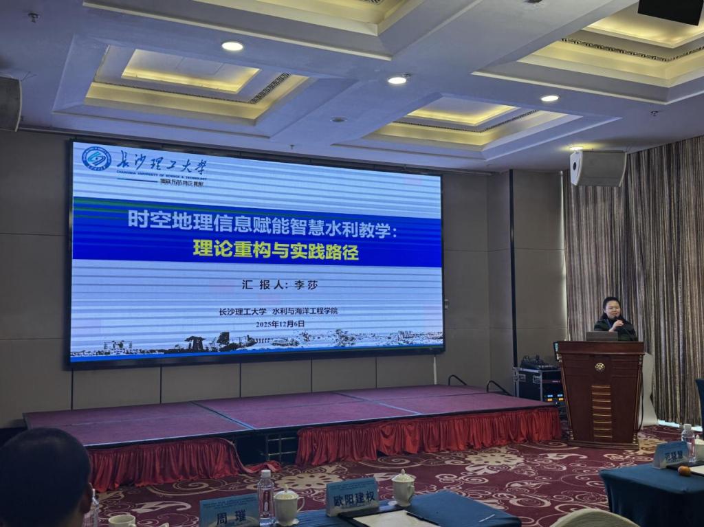 我院教师积极参与各项议程,与兄弟院校同行专家进行了广泛而深入的交流。李莎在分论坛作了“时空地理信息赋能智慧水利教学”专题报告,阐述了数智技术与水利教学的融合路径,分享了我院在水利学科课程重构、数智化实践平台搭建等方面的成果,获得与会专家一致好评。聂小保、向洪勇等就人才培养模式改革、学科交叉融合等方面与相关专家同行进行了交流讨论,积极学习优秀经验。