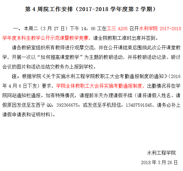 水利工程学院党政联席会议纪要(2017-2018学年第二学期第4次)