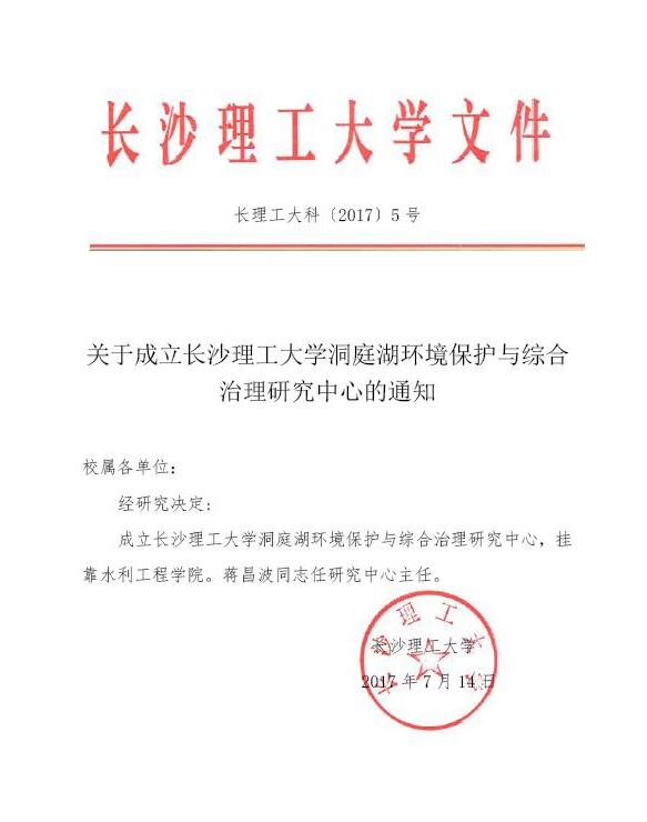 关于成立威廉体育williamhill洞庭湖环境保护与综合治理研究中心的通知