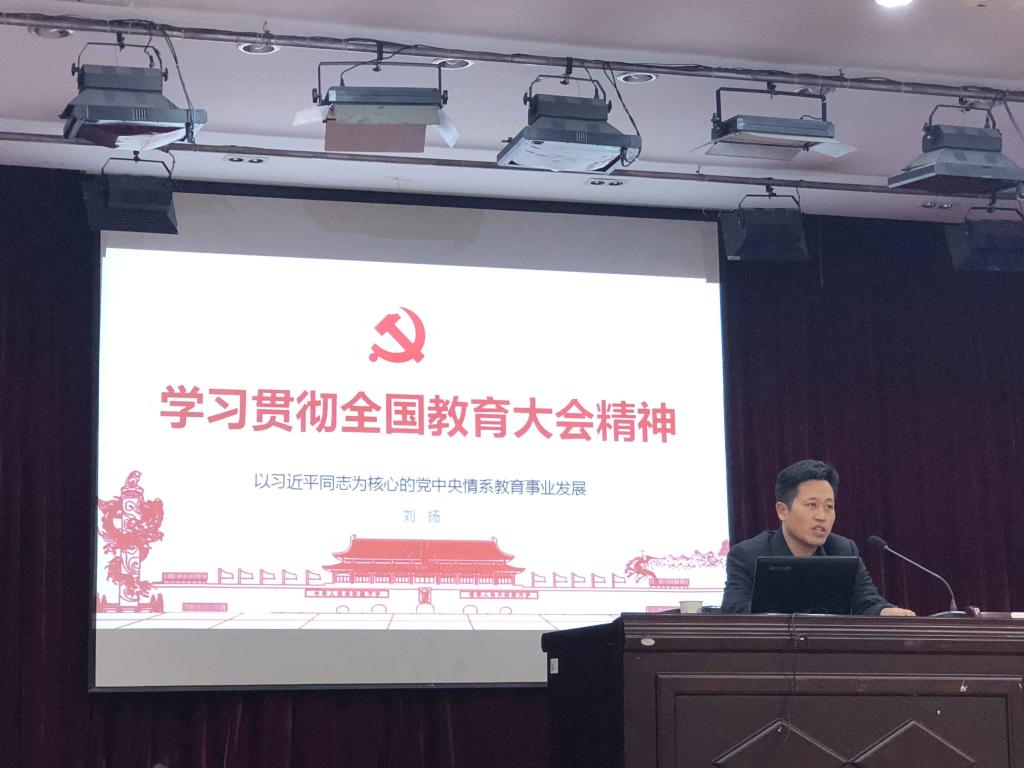 12月18日下午,副校长刘扬在文科楼B204会议室为水利学院和文法学院全体教职工做了“学习贯彻全国教育大会精神——以习近平同志为核心的党中央情系教育事业发展”主题报告,会议由水利学院党委书记喻玲娜主持。