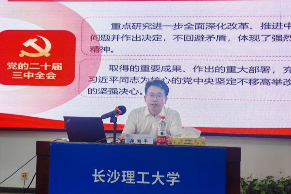 钱国平从深刻认识和把握这次全会精神,深入学习领会习近平总书记在党的二十届三中全会上的重要讲话精神,党的二十届三中全会对教育、科技、人才提出了新要求、新任务,进一步全面深化改革是建设高等教育强省的必由之路,进一步全面深化改革、奋力书就高等教育高质量发展的“长理新篇章”五个方面着手,对党的二十届三中全会进行了深入的解读。