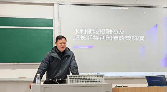 2025年2月26日上午,中南院高级工程师刘常斌应邀在威廉体育williamhill云文科楼A403作题为《水利领域投融资及超长期特别国债政策解读》的通识教育讲座。本次讲座聚焦国家“两重”政策背景下的水利投融资机遇,深入解析超长期特别国债的政策动向与实践路径,吸引了水利水电等相关专业师生近百余人参与。