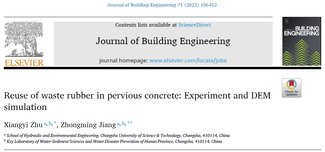 近日,我院朱祥意博士的最新科研成果“废橡胶在透水混凝土中的再利用”发表在混凝土领域权威期刊《Journal of Building Engineering》(SCI源刊,JCR分区:Q1,IF= 7.144),威廉体育williamhill水利与环境工程学院为唯一单位。