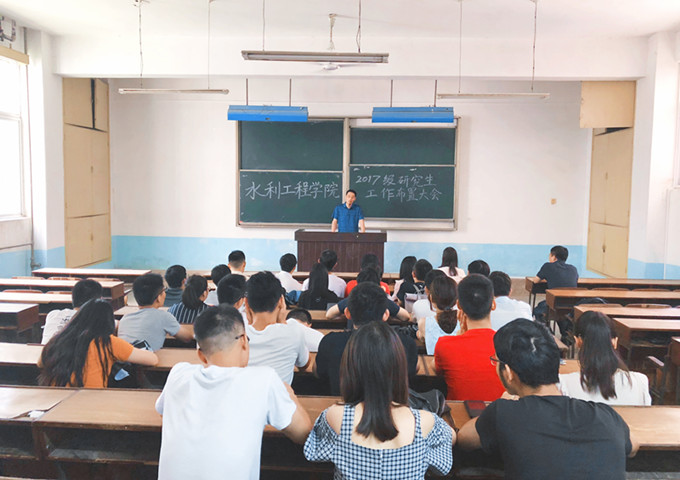 6月11日,水利工程学院在金盆岭校区3教115教室召开了年度工作总结大会,大会由学工办刘灿老师主持,院党委副书记王学成与副院长蒋中明与全体17级研究生参加会议。