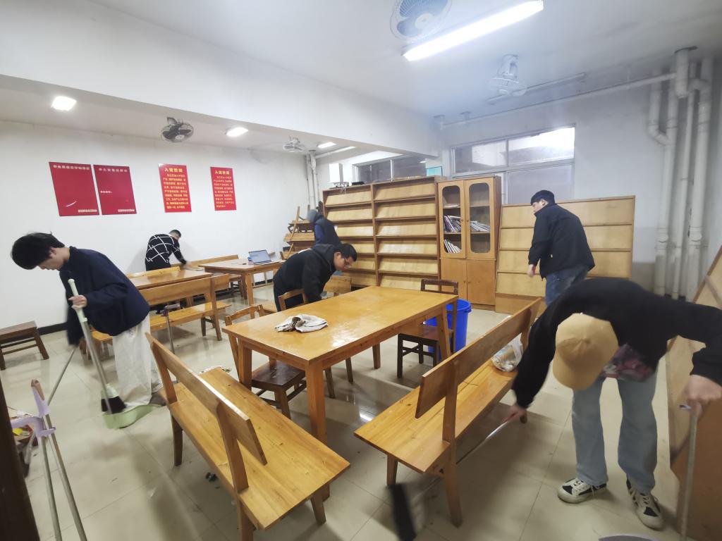 “学雷锋、办实事”,了解学生们情况,切实解决学生实际问题,清理学生宿舍的学生活动室,让人人参与服务、人人乐于服务。一支部成员忙碌的身影,打扫着活动室的每一处角落,一支部成员们分工明确,擦窗户,打扫地面,整理桌椅,摆好学习书籍……随后在活动室内对“雷锋精神、榜样力量”进行学习。