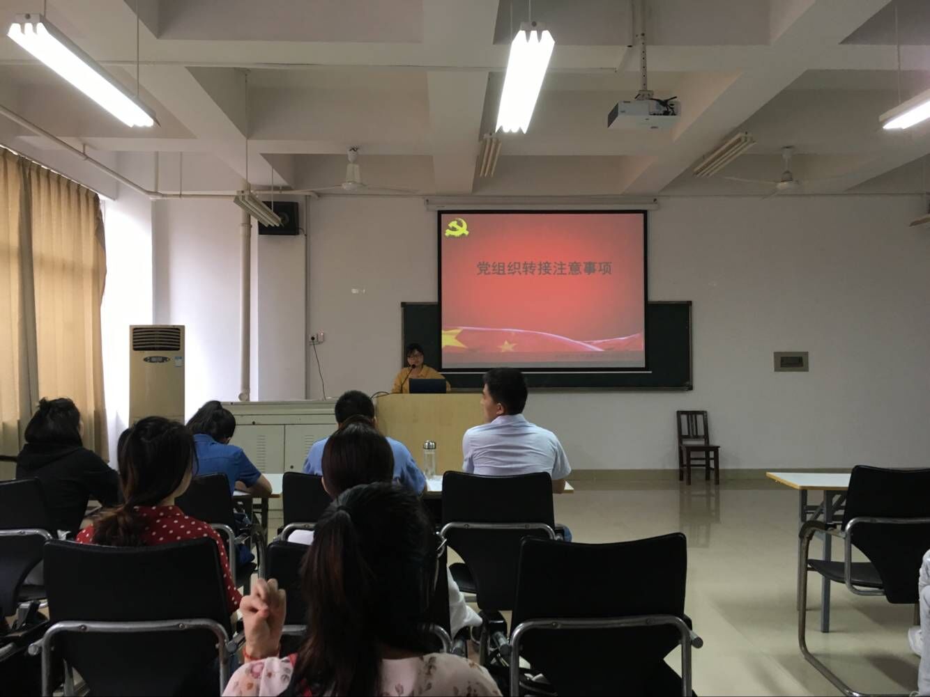 学生党支部副书记,党建辅导员邓奕琳出席了座谈会,并向毕业生党员介绍了党组织关系转接注意事项、介绍信格式与内容以及目前学院党建工作中转接党组织关系存在的问题,提醒大家处理好党员组织关系等事项,妥善保管好党员档案袋。